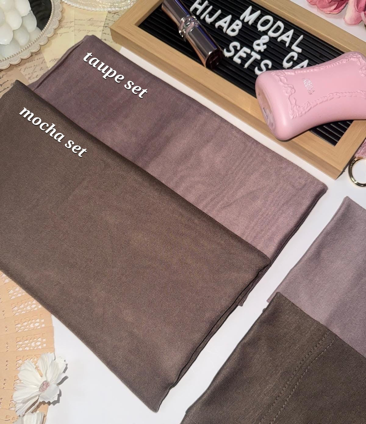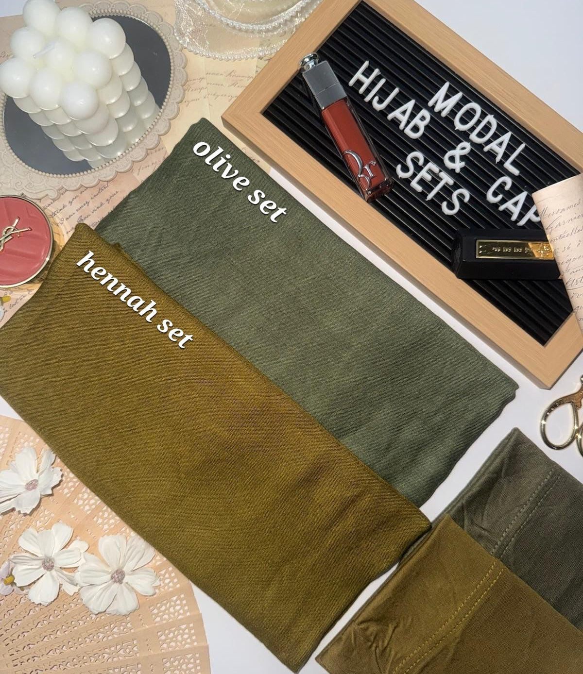 Each set comes with a premium Modal hijab and a matching custom dyed premium Jersey undercap. We are the first in the UK to offer matching hijab sets and the best quality matching hijab sets.