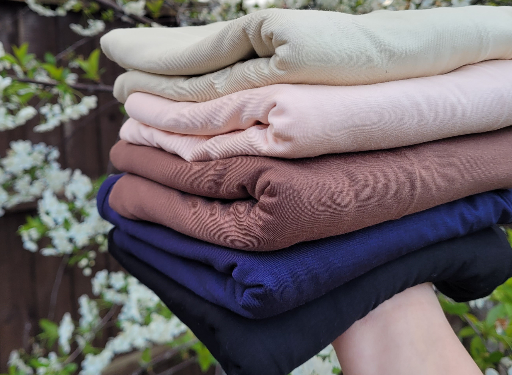 Bamboo jersey is a knitted fabric made from 95% bamboo fibres and 5% elastane. It is a more environmentally friendly and healthy alternative to conventional cotton. ( bamboo is more breathable than cotton) Bamboo jersey has a 4-way stretch and it is super soft, breathable, fast drying and thermal regulating.
